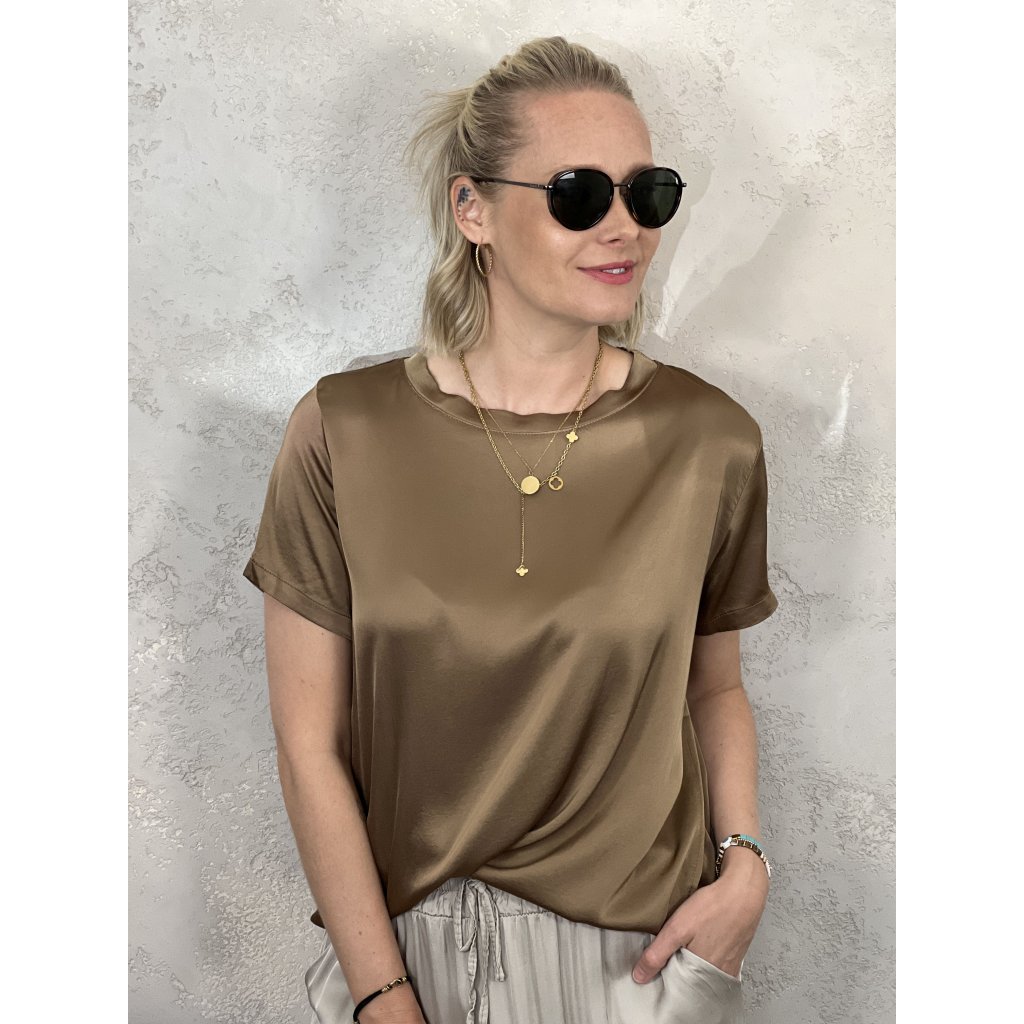 SATÉNOVÉ TRIČKO MELL hnědé